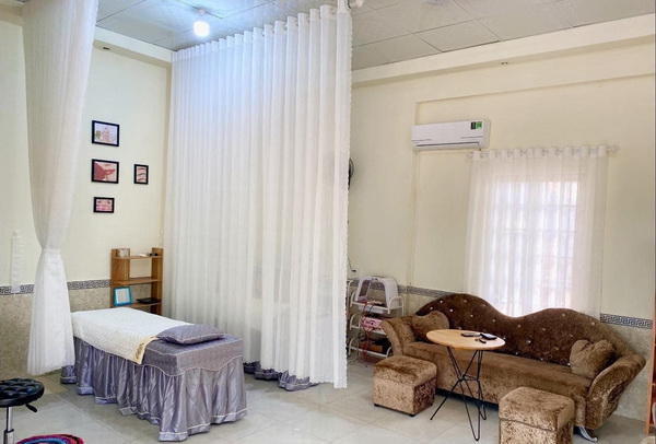 Vách ngăn giường spa bằng rèm là giải pháp được rất nhiều spa lựa chọn hiện nay.